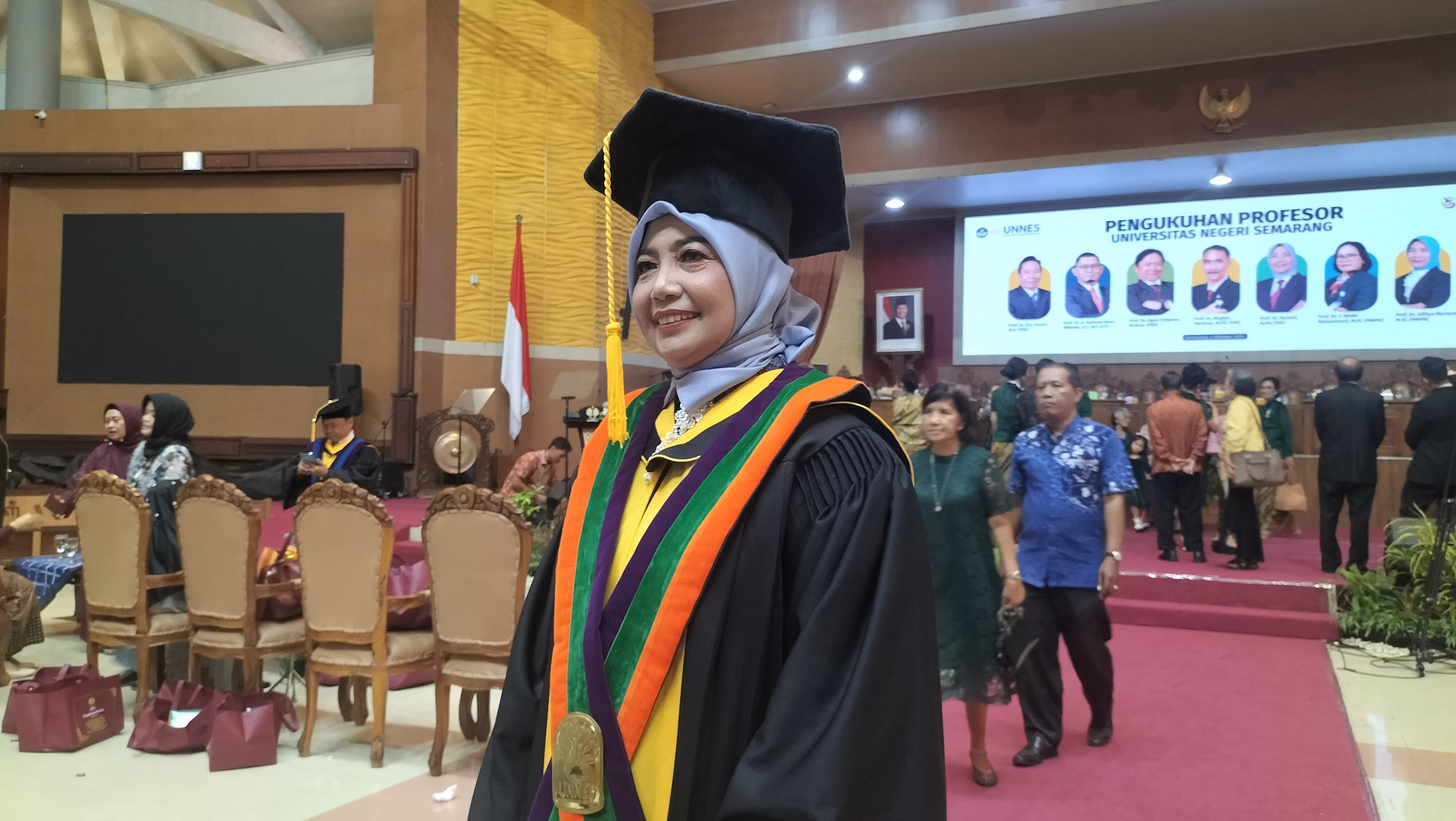 Kedua pengurus KONI tesebut dikukuhkan bersama lima guru besar lainnya pada disiplin keilmuan masing-masing. “Profesor bukan hanya sebuah pangkat, tetapi pengakuan kecemerlangan dalam Tri Dharma Perguruan Tinggi. Profesor harus menjadi bara yang menjaga api akademik, sekaligus mentor yang menginspirasi mahasiswa untuk mencintai ilmu pengetahuan,” ucap Prof Martono saat memberi sambutan dalam pengukuhan guru besar di Auditorium Prof. Wuryanto, Kampus Sekaran, Gunungpati, Kamis (2/10/2025).